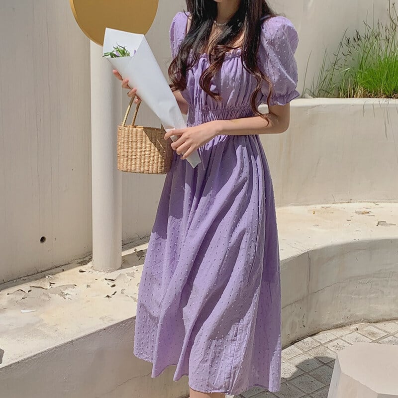 ウエストシャーリングパフスリーブワンピース 3color M0093